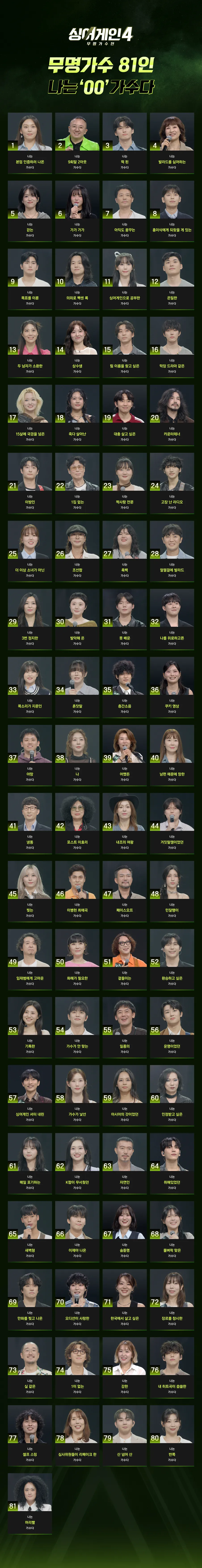 궁금증을 참지 못하는 분들을 위해, 1호부터 81호까지 참가자들의 정체(이름, 이력)를 완벽하게 정리했습니다. 스크롤을 내리기 힘들다면 'Ctrl+F'로 궁금한 번호를 바로 찾아보세요!