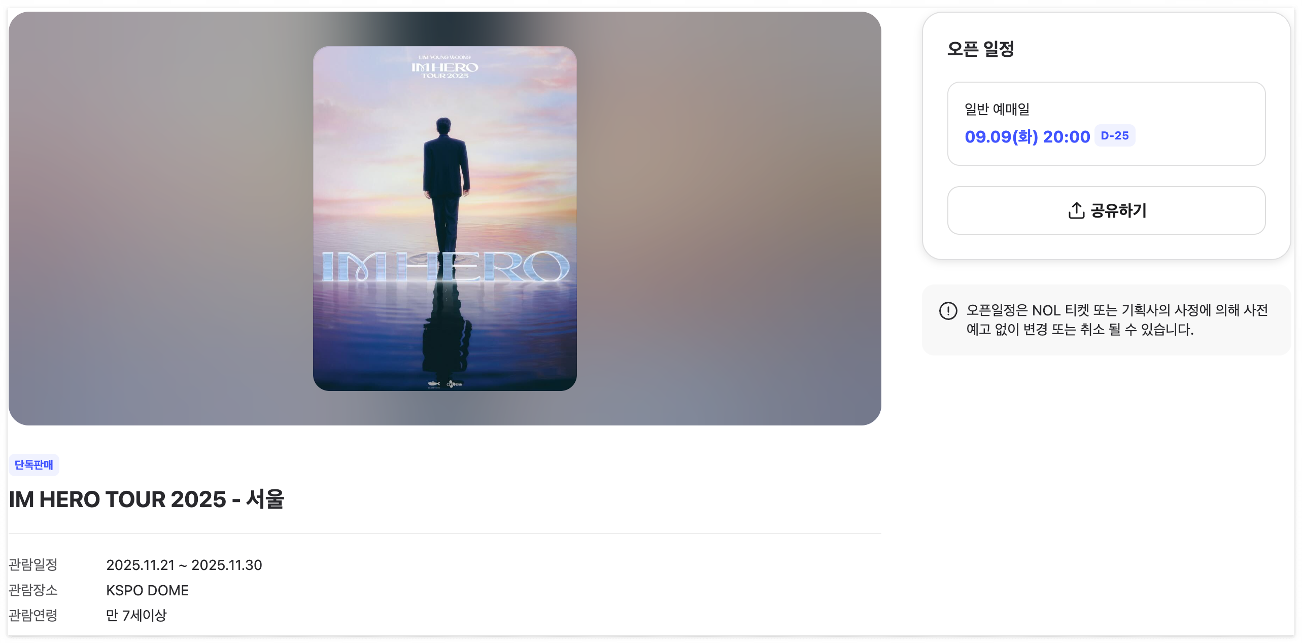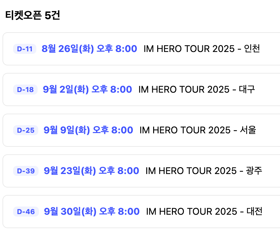 임영웅 콘서트 일정 장소, 예매 시간, 공연장 정보 | IM HERO TOUR 2025 [전국 콘서트 장소, 예매 날짜