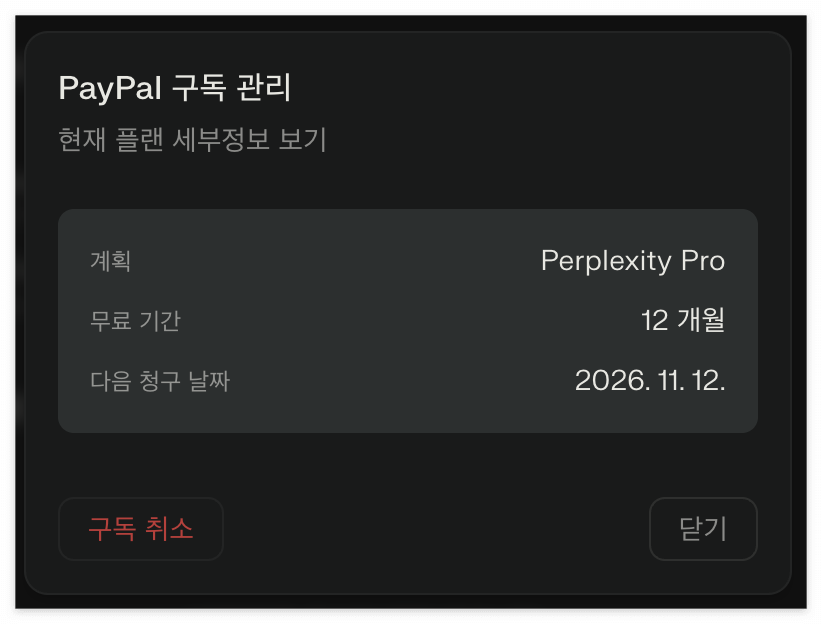 🎉 이제 1년 뒤인 2026년 오늘, 자동으로 구독이 종료되며 추가 요금은 절대 청구되지 않습니다!