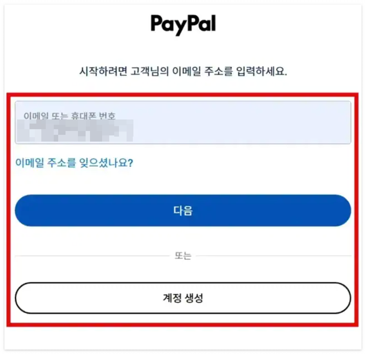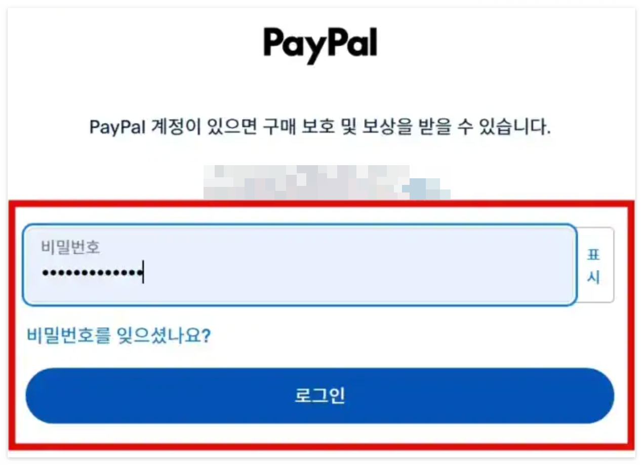 - 페이팔 로그인 창이 뜨면 로그인을 진행합니다.