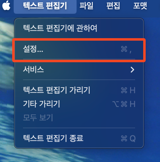 - Spotlight(Ctrl + Space)에서 "텍스트 편집기" 검색 (또는 런치패드 > 텍스트 편집기 실행)