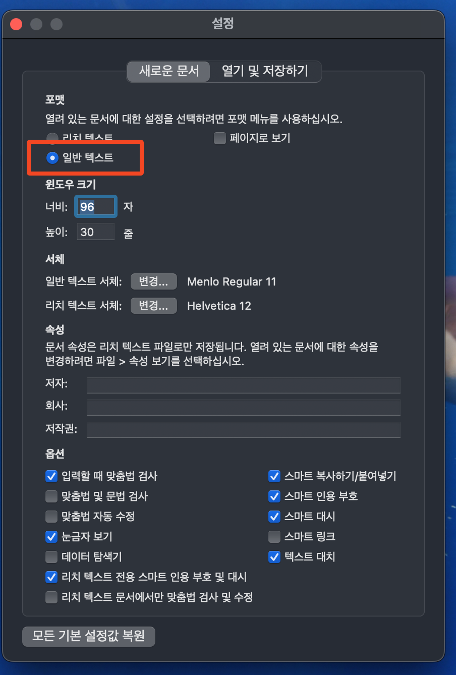 ⛔ Tip: macOS 기본 설정은 리치텍스트(.rtf)입니다. 꼭 일반 텍스트로 바꾼 뒤 저장하세요!