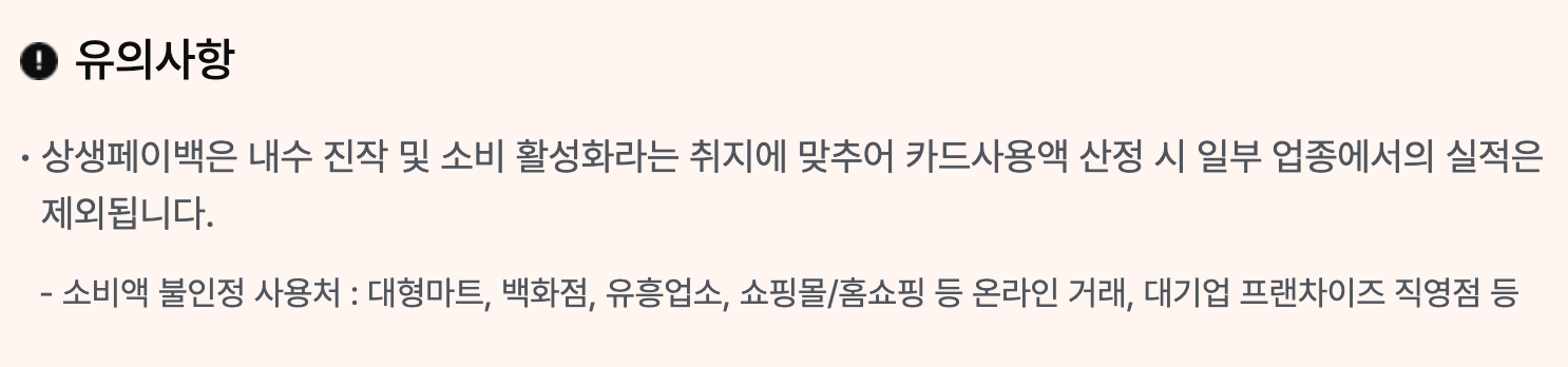 페이백은 소상공인 매장에서의 소비를 늘리기 위한 것이므로, 모든 카드 사용액이 실적으로 인정되지는 않아요.