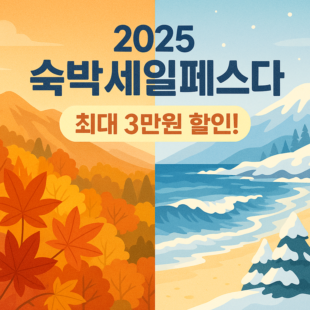 여행을 사랑하는 여러분이 손꼽아 기다리던 그 소식! 🍂❄️ 바로 2025 숙박세일페스타 (가을·겨울편)가 돌아왔습니다. 저렴하게 국내 숙소를 예약할 수 있는 절호의 기회지만, 선착순 발급과 다소 복잡한 규정 때문에 어려움을 겪는 분들이 많으시죠?