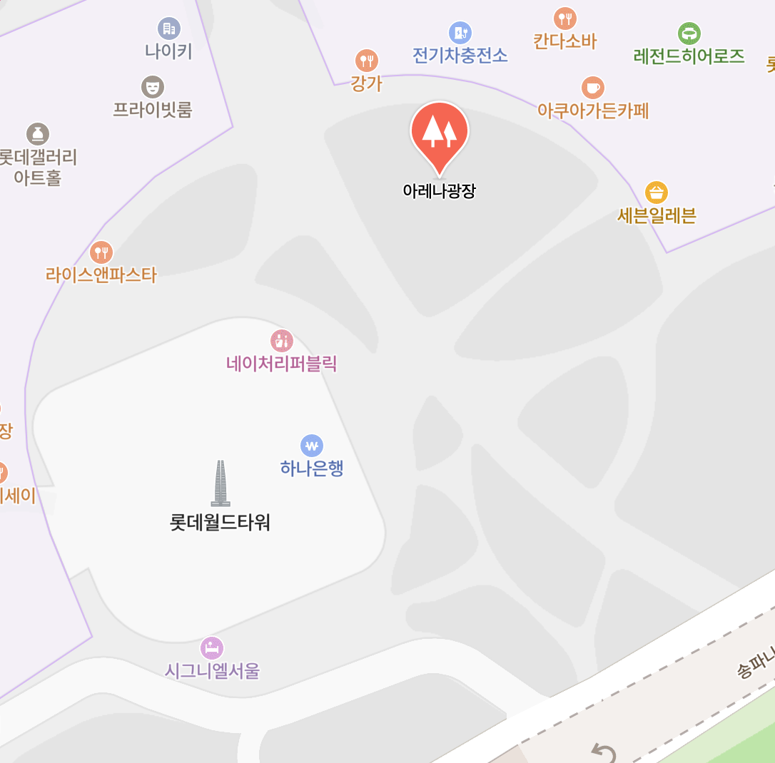 - 주소: 서울특별시 송파구 올림픽로 300, 잠실 롯데월드타워 월드파크 잔디광장(야외)