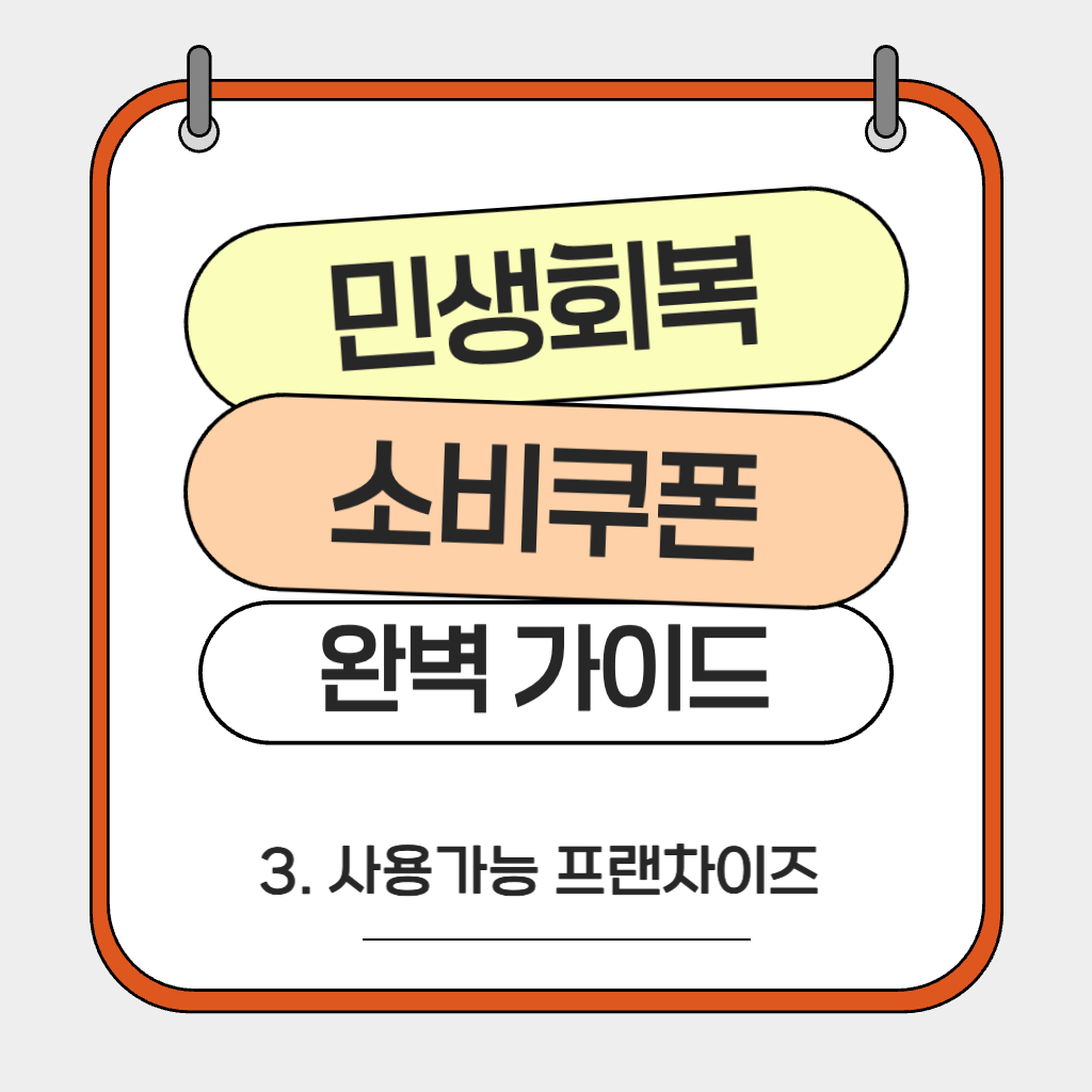 이제 헷갈리는 프랜차이즈 사용처, 확실히 아시겠죠? 11월 30일까지 똑똑하고 현명하게 소비쿠폰을 활용하여 우리 동네 경제에도 활력을 불어넣어 주세요! 더 궁금한 점이 있다면 언제든지 댓글로 물어봐 주세요~ 😊