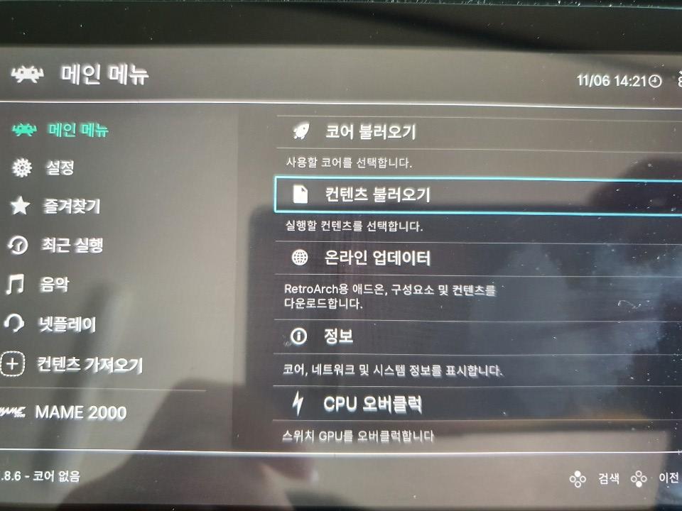 6) 선택한 게임에 해당되는 코어를 선택 해줍니다. 보통 코어별로 롬파일을 정리 해놨을겁니다.