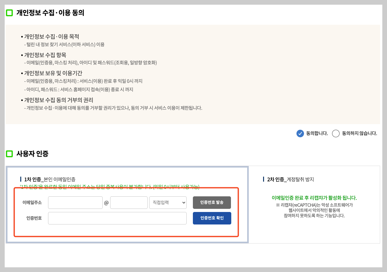 📝 '털린 내 정보 찾기' 서비스 이용 방법