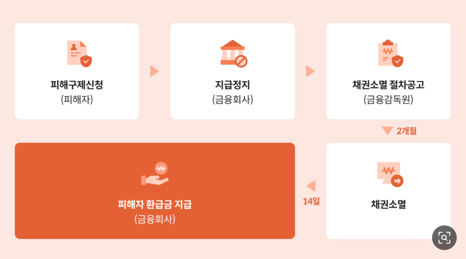 신청이 완료되면 금융감독원에서 해당 계좌의 채권을 소멸시키는 절차를 진행해요. 그리고 범인 계좌에 남아있는 잔액을 기준으로 피해자에게 환급금을 결정하여 지급합니다.